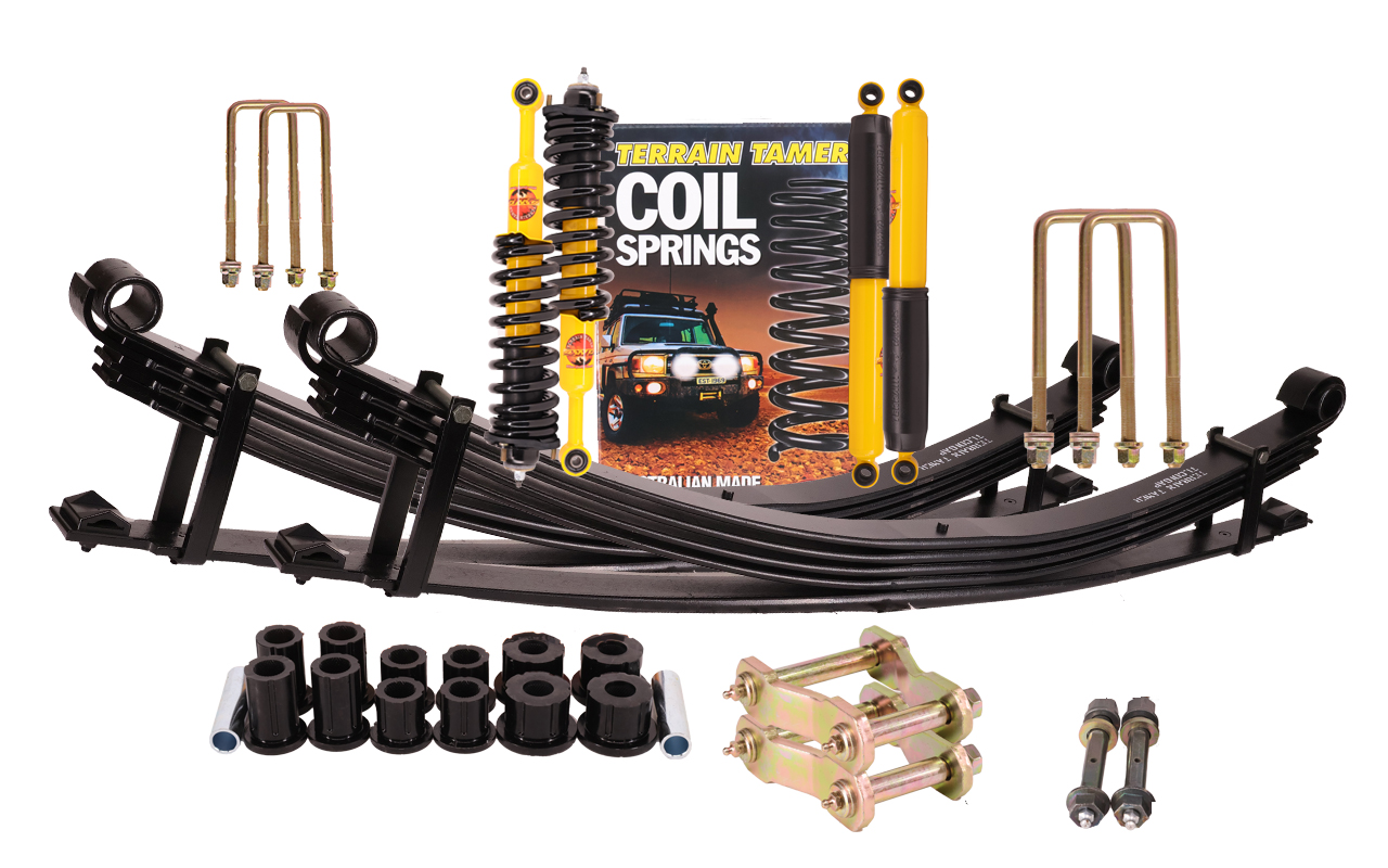 Engineered for added durability and load‑carrying performance, the Terrain Tamer KUN26 Series Hilux Assembled Heavy‑Duty Suspension Kit (SK016AX) includes reinforced rear leaf springs and pre‑ assembled front coil‑over shocks. This kit is ideal for work vehicles, tradespeople, and tourers looking to improve vehicle stability and suspension strength under demanding conditions.